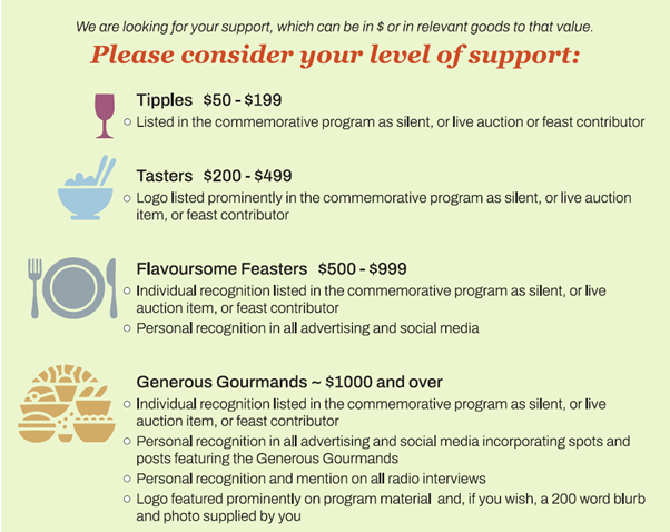 Further information on how to get involved or donate to the Feast email: bundanoon.feasts@bca.asn.au